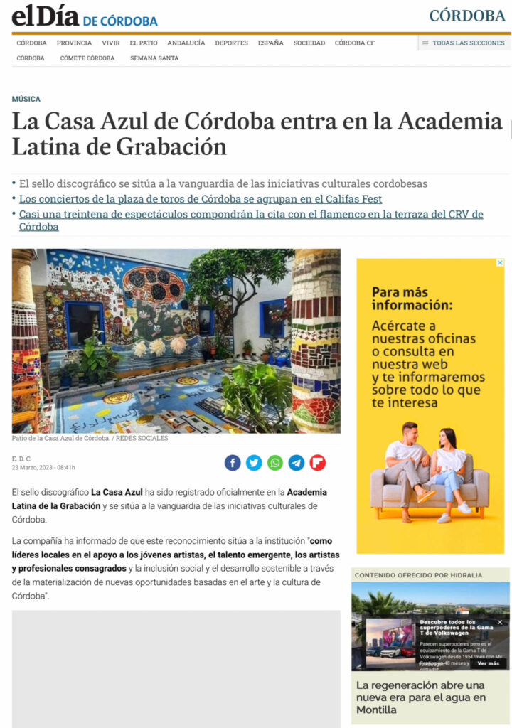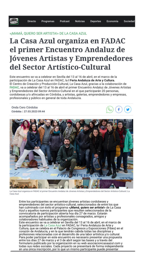 Nos complace compartir que la Asociación La Casa Azul ha firmado un convenio de colaboración con el Excmo. Ayuntamiento de Córdoba para el desarrollo del Programa de Acción Social a través del Arte y la Cultura durante el año 2023.